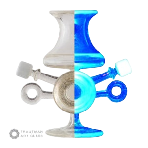 Blu-V is a clear glass that fluoresces blue under a U.V. light source. Recommend to use an ultraviolet L.E.D. light with a 365Nm-395Nm range for the brightest blue glow. This is a stable glass and can be used in any type of flame.
